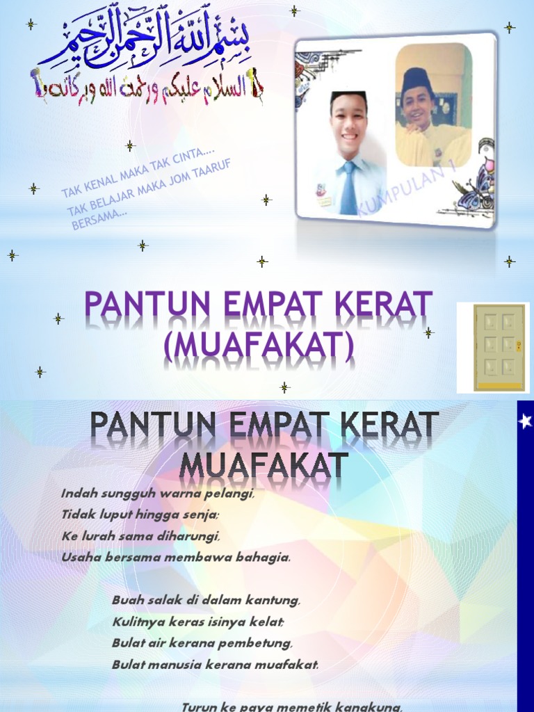 Biji berangan biji selasih cucilah tangan sehingga bersih. Pertandingan menulis pantun 4 kerat minggu haluansiswa. Rakyat malaysia sungguh beruntung, pelbagai kaum hidup sepakat, bulatnya air kerana pembetung, bulat manusia kerana muafakat. Burung kedidi di pohon nangka, burung kenyalang hinggap di dahan, orang berbudi kita berbahasa, mesra ikatan erat perpaduan. Get your team aligned with all the tools you need on one secure, reliable video platform.